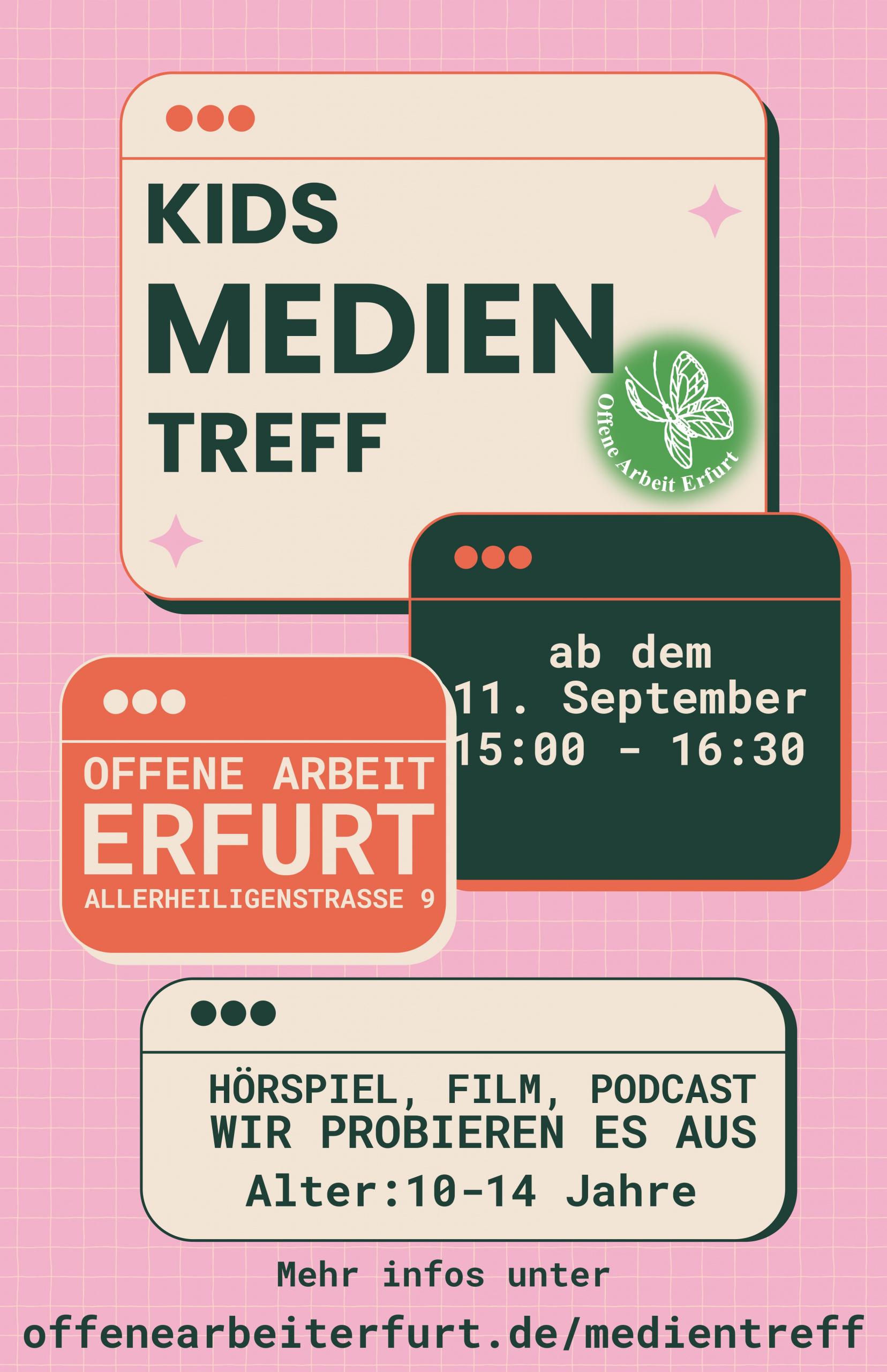 Beim Kids Medien Treff kannst du selbst entscheiden, was wir gemeinsam machen: einen Film drehen, ein Hörspiel aufnehmen, einen Comic gestalten oder sogar einen Podcast starten.